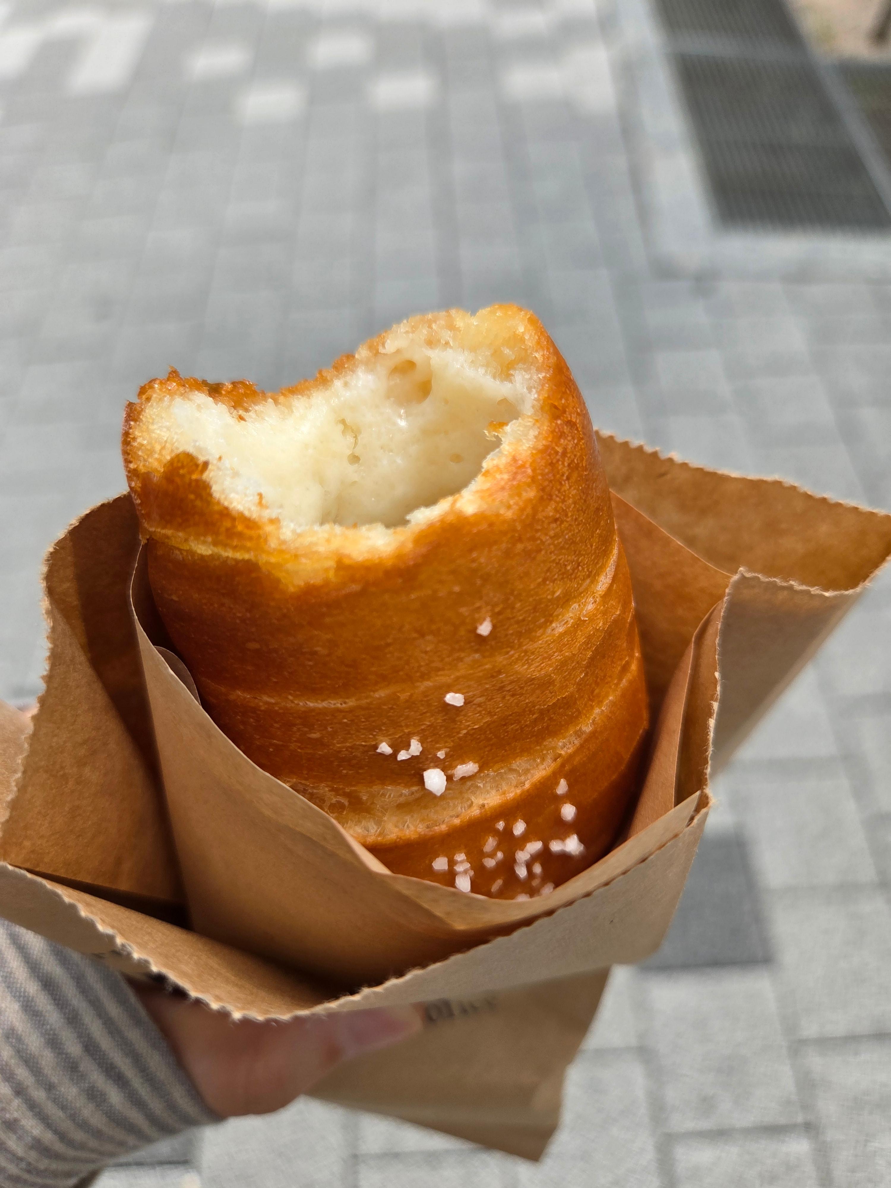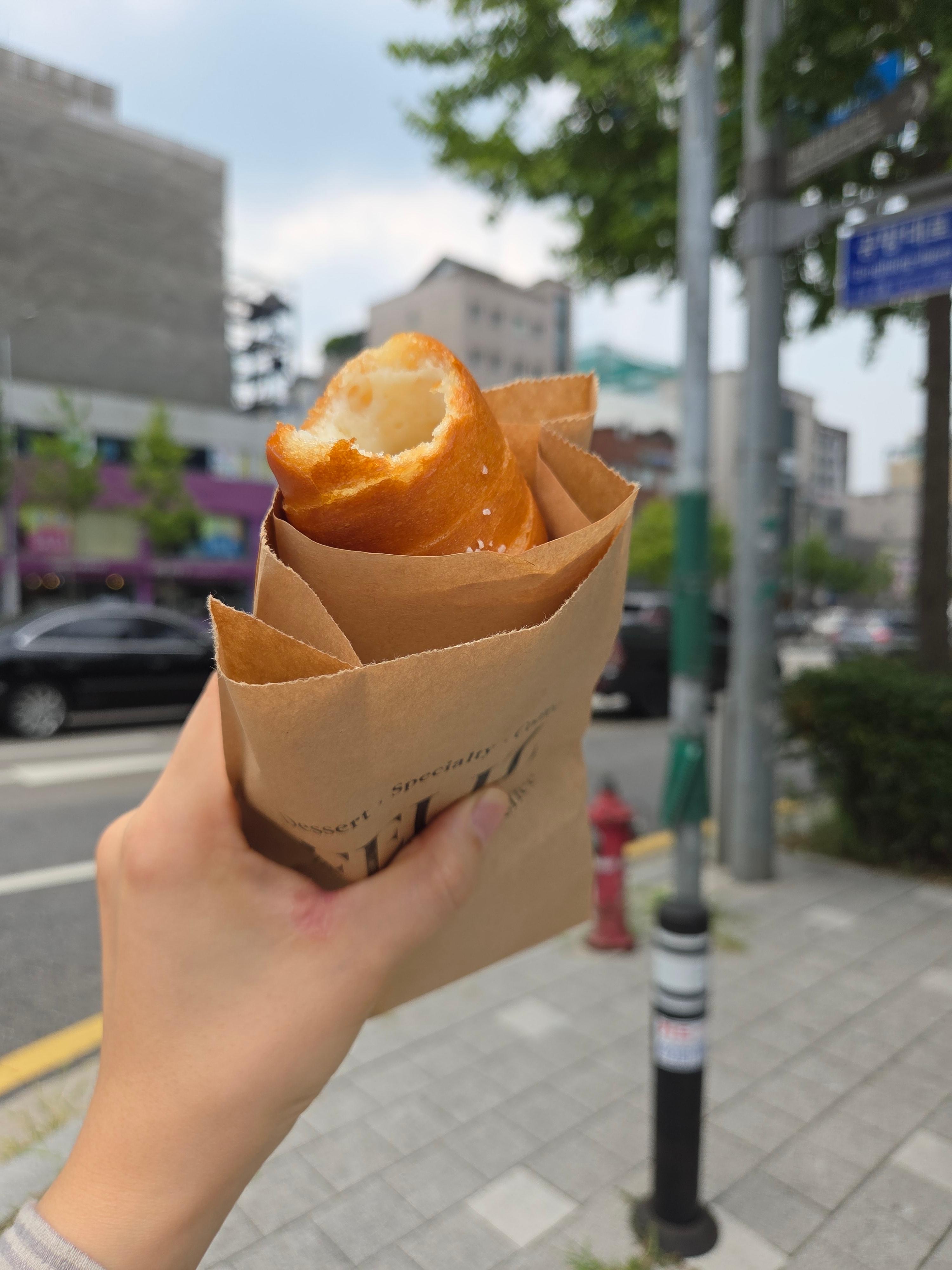 집에 가는 길, 결국 참지 못하고 따뜻한 소금빵을 한 입.